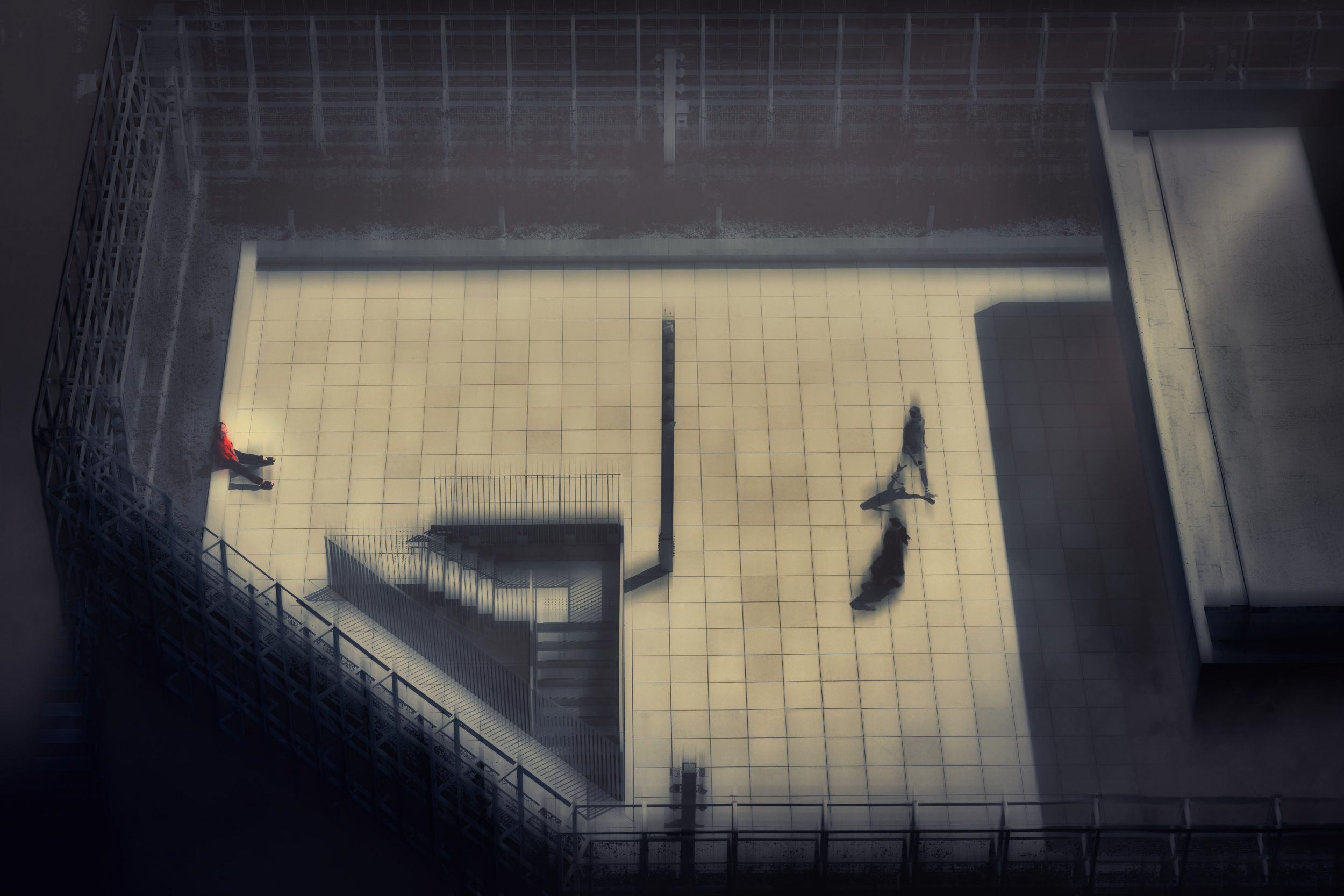 • The second photo collages multiple images taken from the same level to contrast urban noise with solitude.
