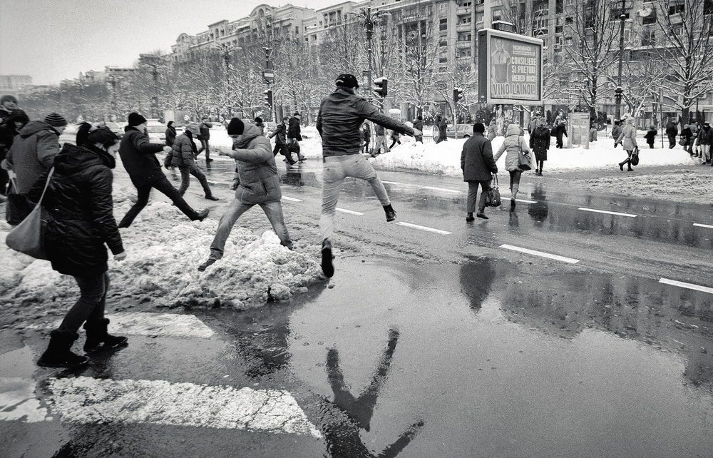 The motion represents a great moment of interest in the street photography. The motion initiates a story, suggests a consequence of the captured moment or communicates what happened before that moment. But what is suggested or anticipated by the act of motion only emerge in the mind of the viewer. Technically speaking one cannot create a movement from a static image: the image doesn’t move, it is a still moment on the screen or printed on the paper. But is the imagination that it is guided by the photographer to discover the sense of the motion in the static image and complete the scene by suggesting what just happened or anticipating about what is going to happen.